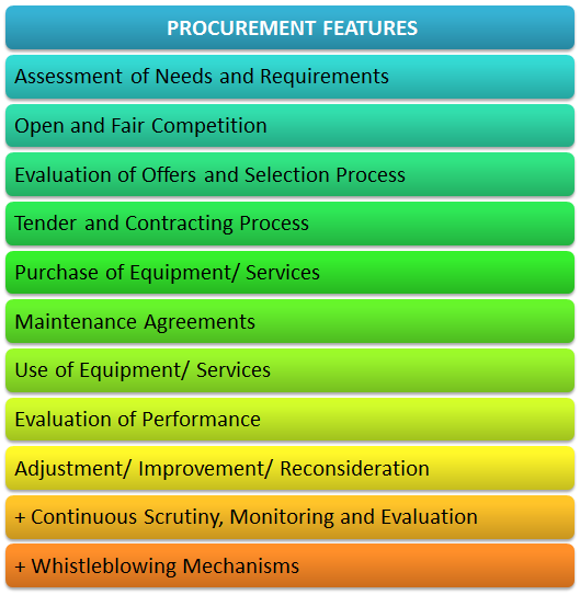 A framework for enhancing integrity in procurement is provided by the international standard ISO 15288.[12] Procurement must be based on procedures of fairness, impartiality, transparency, efficiency and open competition.